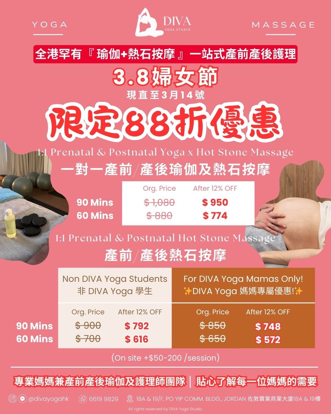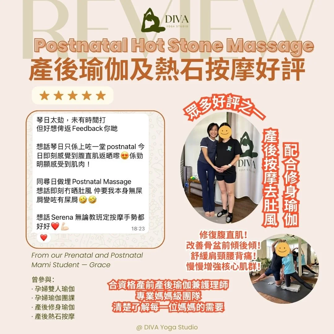 我們的「瑜伽 + 熱石按摩」一站式護理,專為緩解這些特定困擾而設計!DIVA Yoga 宗旨希望媽媽們都能有me time 放鬆身心!