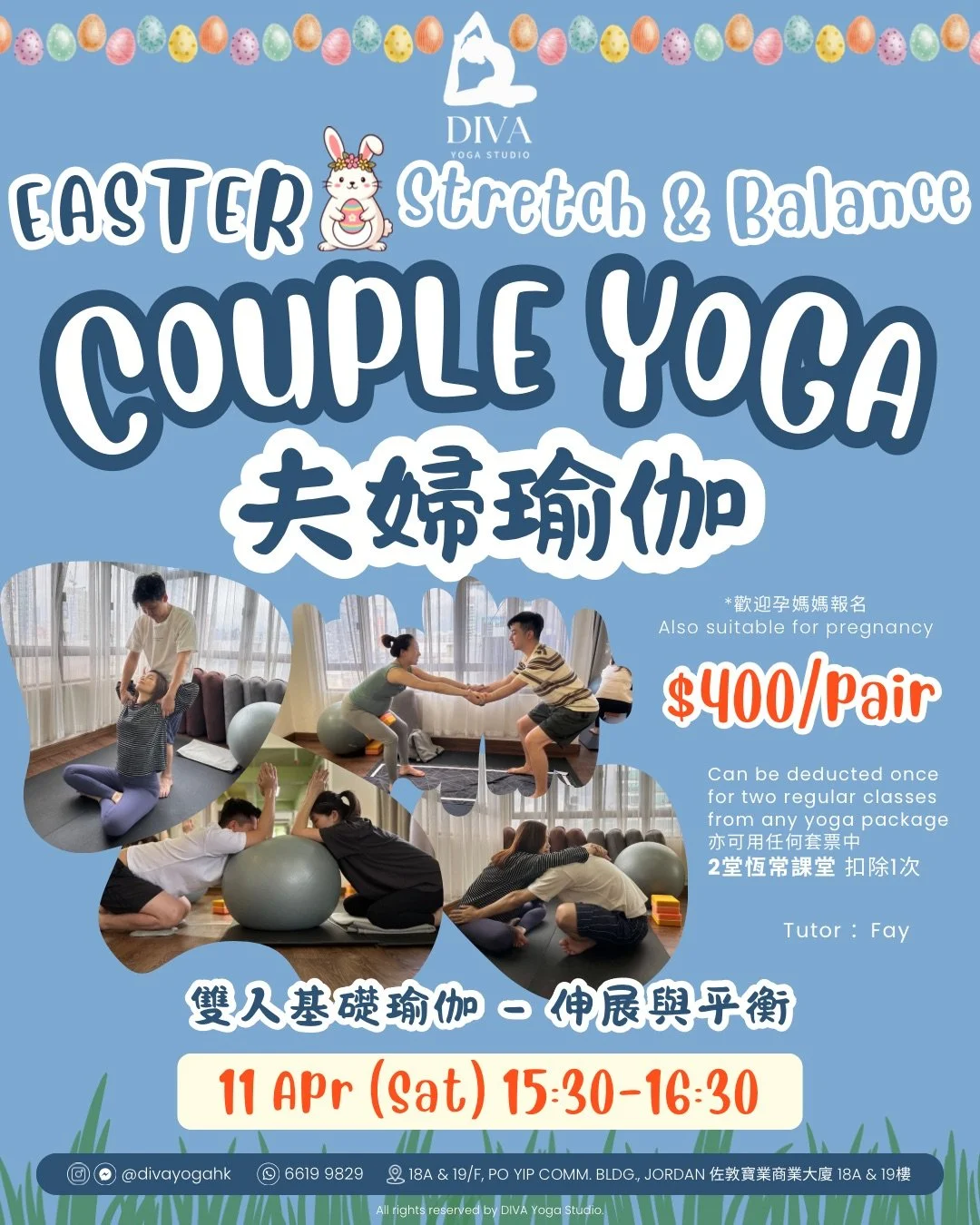 邀請另一半一起參與,增進感情!🥰 雙人瑜伽講求默契和溝通,透過幫助對方伸展身體,和不同雙人基礎瑜伽式子練習,給雙方一個機會專注自己的身體和聆聽對方的感受!